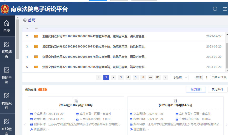 南京法院立案截图