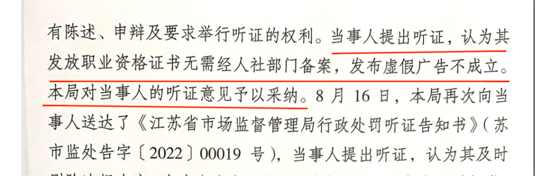 再次,JYPC要感恩江苏省市场监督管理局。2022年4月,人社部人事考试中心和人社部职业技能鉴定中心等官办发证机构,通过网络公开发表声明举报江苏英才职业技能鉴定集团和JYPC全国职业资格考试认证中心。接到举报后,JYPC有权执法部门、江苏省市场监督管理局立即着手立案。经过长达一年的调查取证,江苏省市场监督管理局客观公正地做出了决定,指出“当事人(JYPC)提出听证,认为其发放职业资格证书无需经人社部门备案,发布虚假广告不成立。本局对当事人的听证意见予以采纳”。JYPC发放职业资格证书无需去人社部门备案,从此有了法律依据。人社部职业技能鉴定中心等部门发布的侵权声明“没在人社部门备案就是国家不认可”, 从此成了官办打压民办的历史笑料。